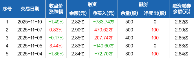 宝莫股份:融资净偿还783.74万元,融资余额2.82亿元(11-10)