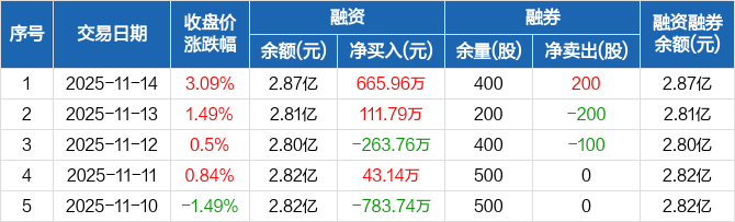 宝莫股份:融资净买入665.96万元,融资余额2.87亿元(11-14)