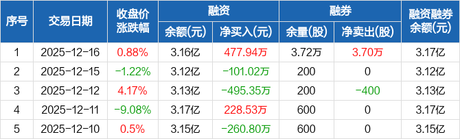 宝莫股份:融资净买入477.94万元,融资余额3.16亿元(12-16)