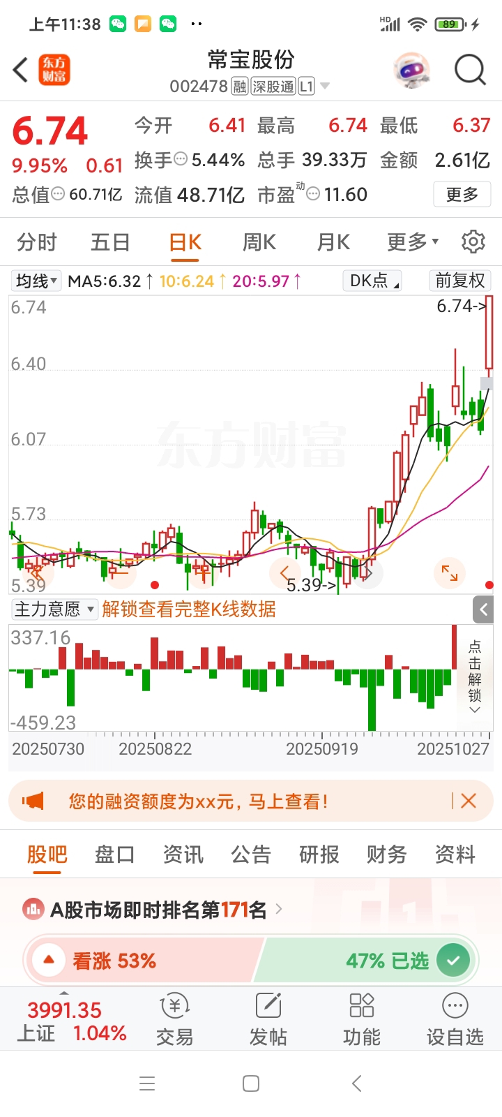 $常宝股份(SZ002478)$ 今天早上,常宝变成光头强