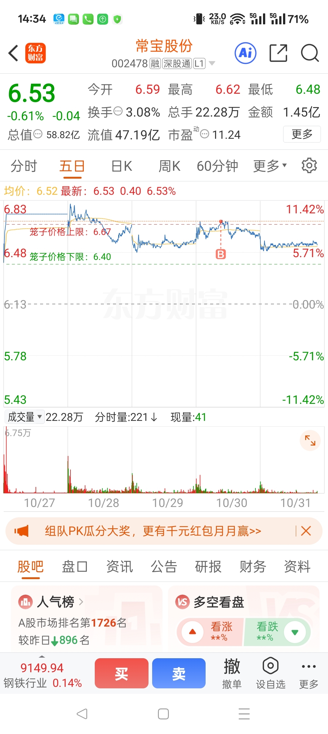 $常宝股份(SZ002478)$ 买的太快