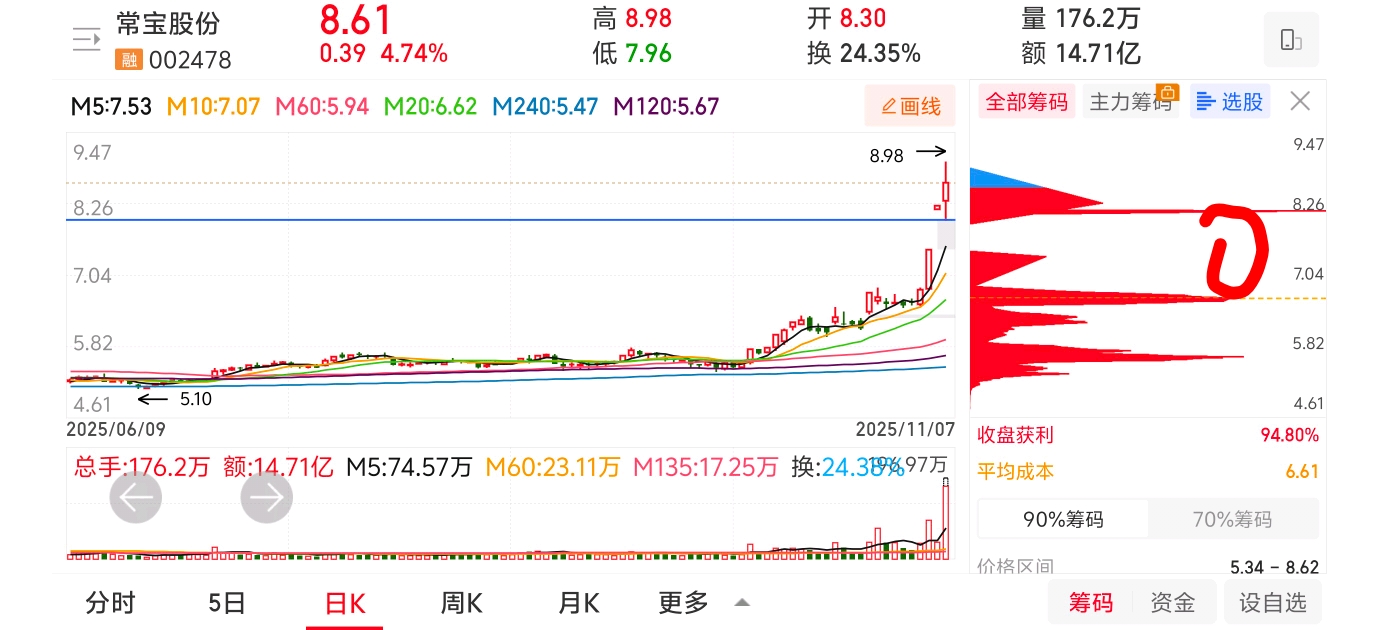 $常宝股份(SZ002478)$ 常宝GF筹码一线天,收盘是板还是中字柱?