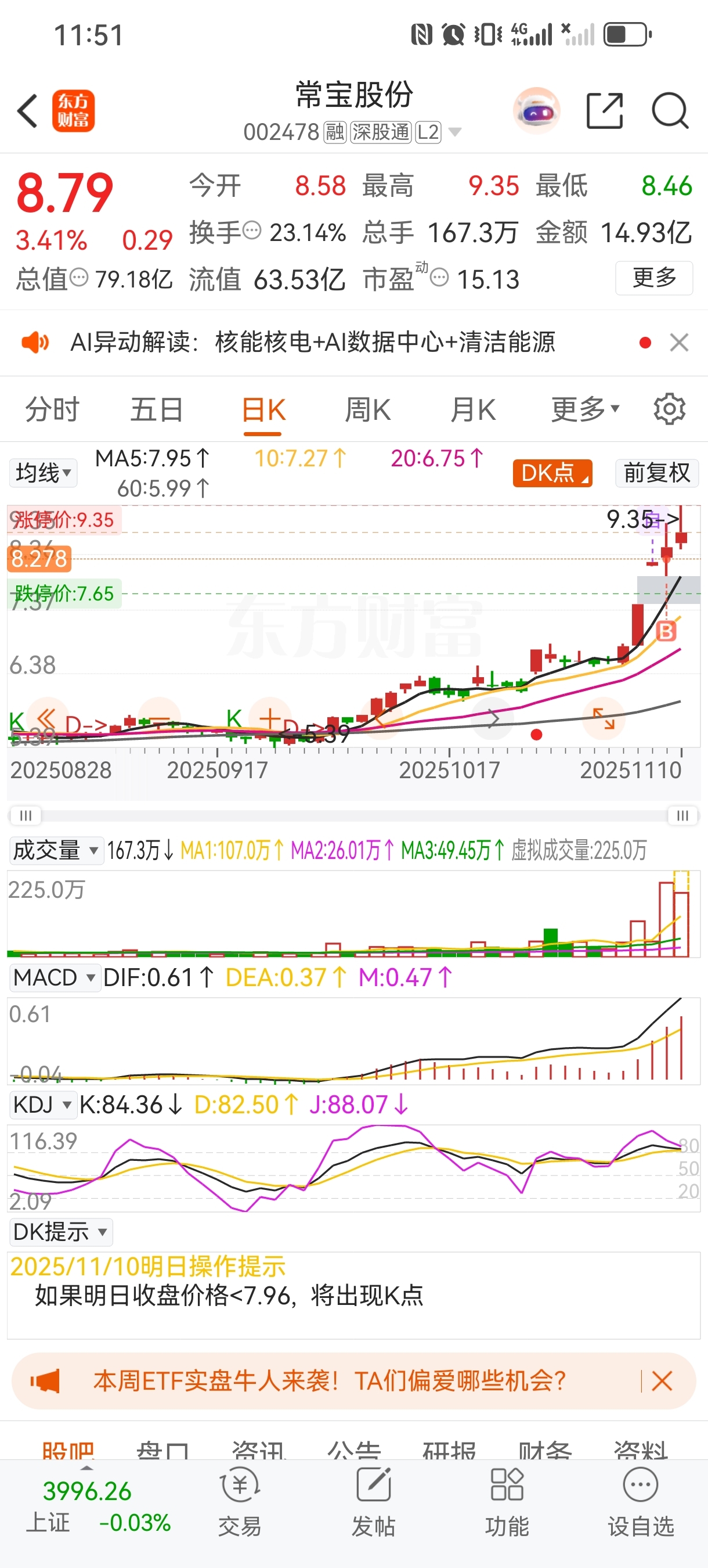 $常宝股份(SZ002478)$ 这个票肯定是要走妖的,今天涨停给了你们机会走了,班后快速下杀洗盘,不坚定的该走都走了,不出意外,下午回封,明天开始连板模式……只是今天心里有点不舒服哎,封单减少没第一时间先出来,低吸再入,没做到知行合一!看来还是没达到这种主力高度啊!