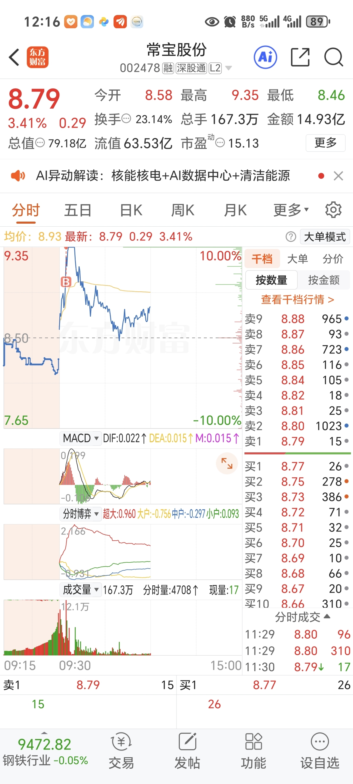 $常宝股份(SZ002478)$ 兄弟们,今天打这个板错那了?今天不是标准的弱转强吗?