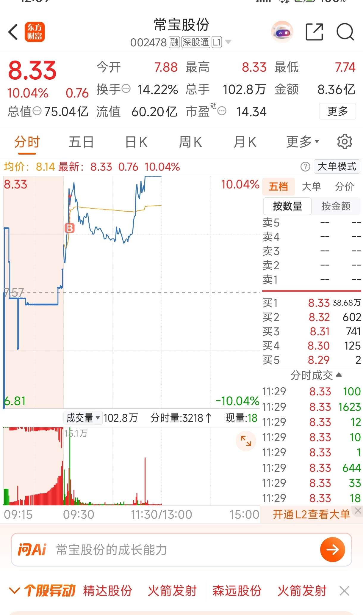 $常宝股份(SZ002478)$ 高开高走,干就完事了