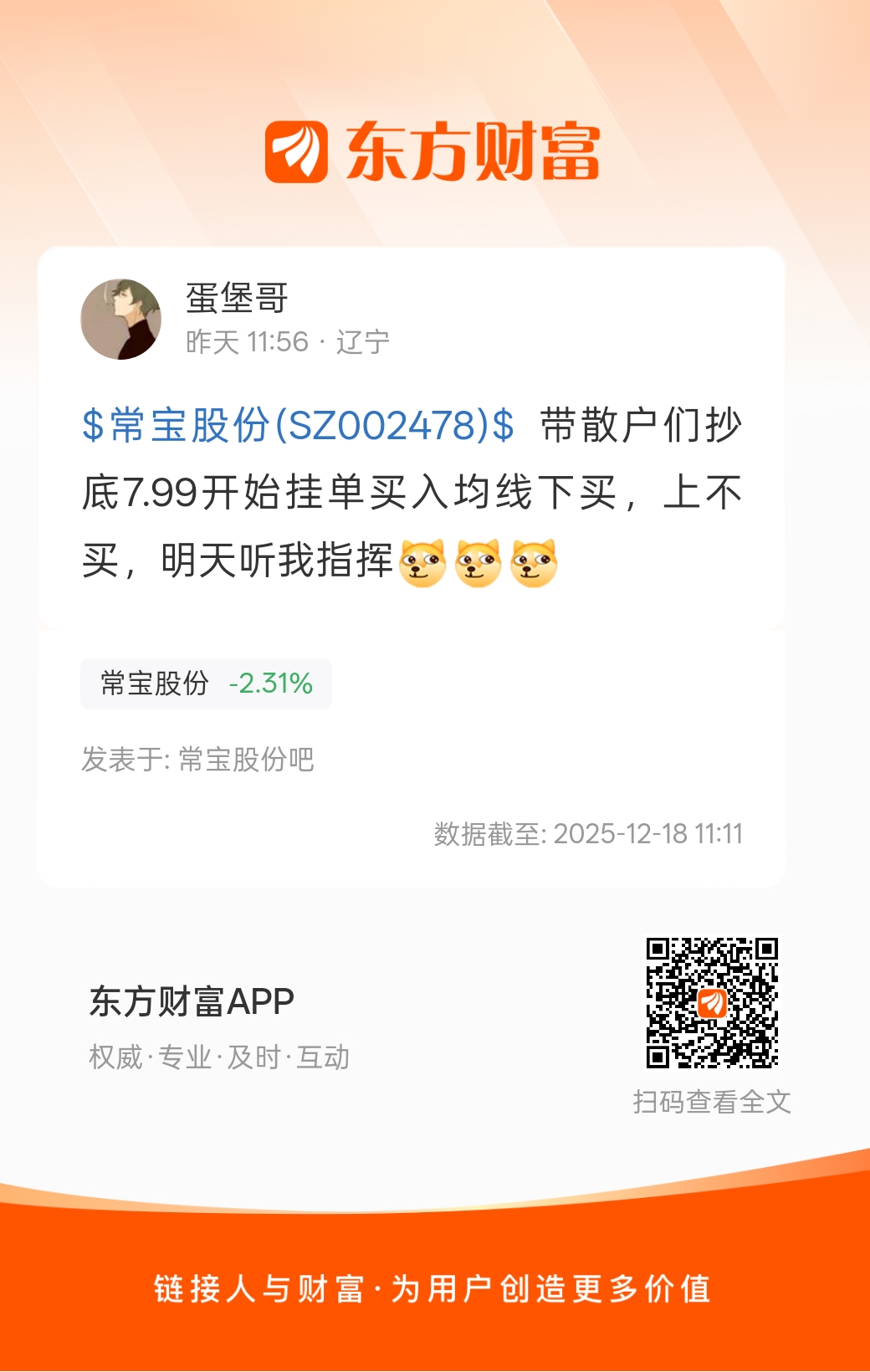 温馨提示: 1.根据《证券法》规定,禁止编造、传播虚假信息或者误导性信息,扰乱证券市场;2.用户在本社区发表的所有资料、言论等仅代表个人观点,与本网站立场无关,不对您构成任何投资建议。用户应基于自己的独立判断,自行决定证券投资并承担相应风险。《东方财富社区管理规定》