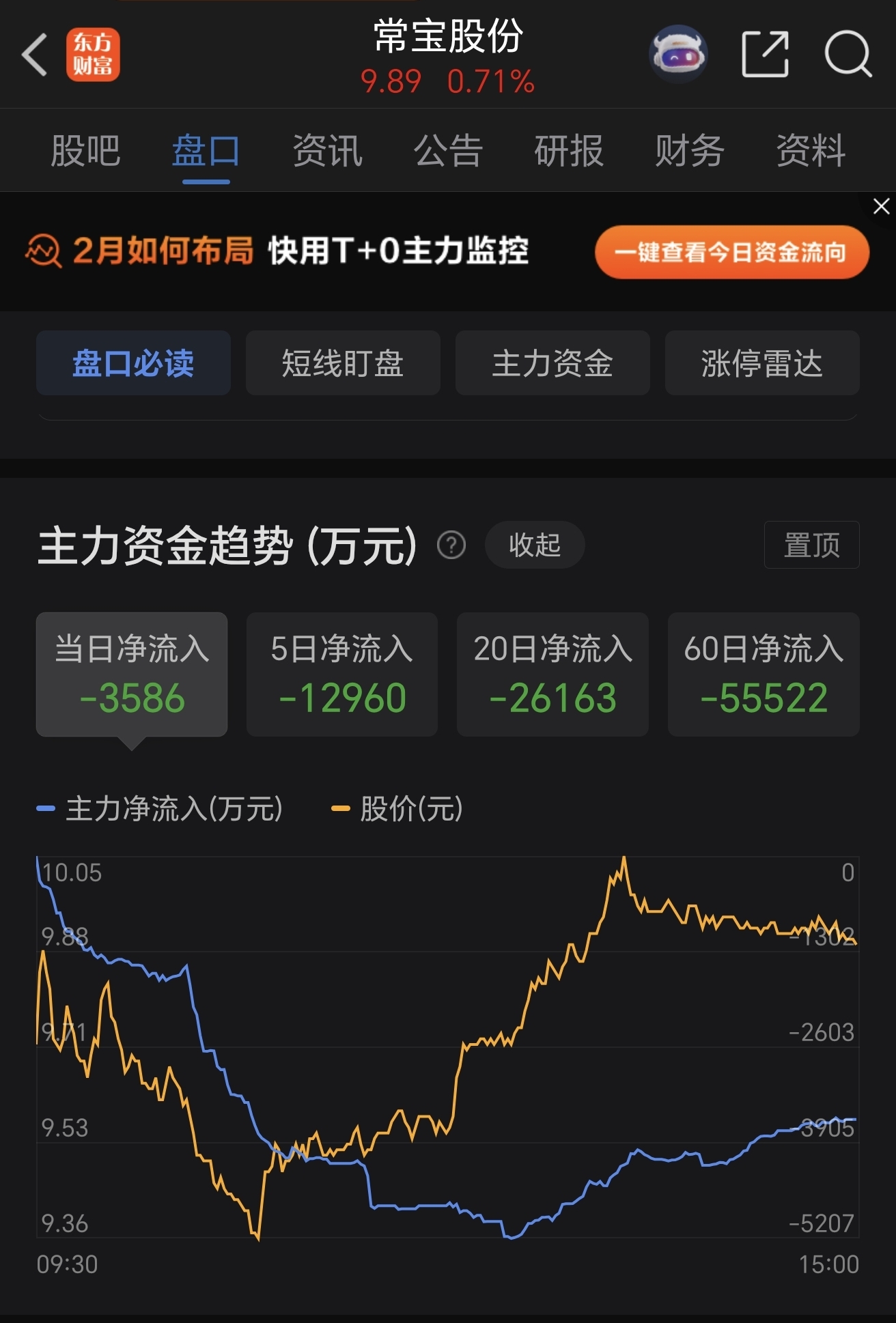 常宝最近一个多月资金除了涨停那天,其他时间都是资金流出,哪怕是猪血这么流出血都流