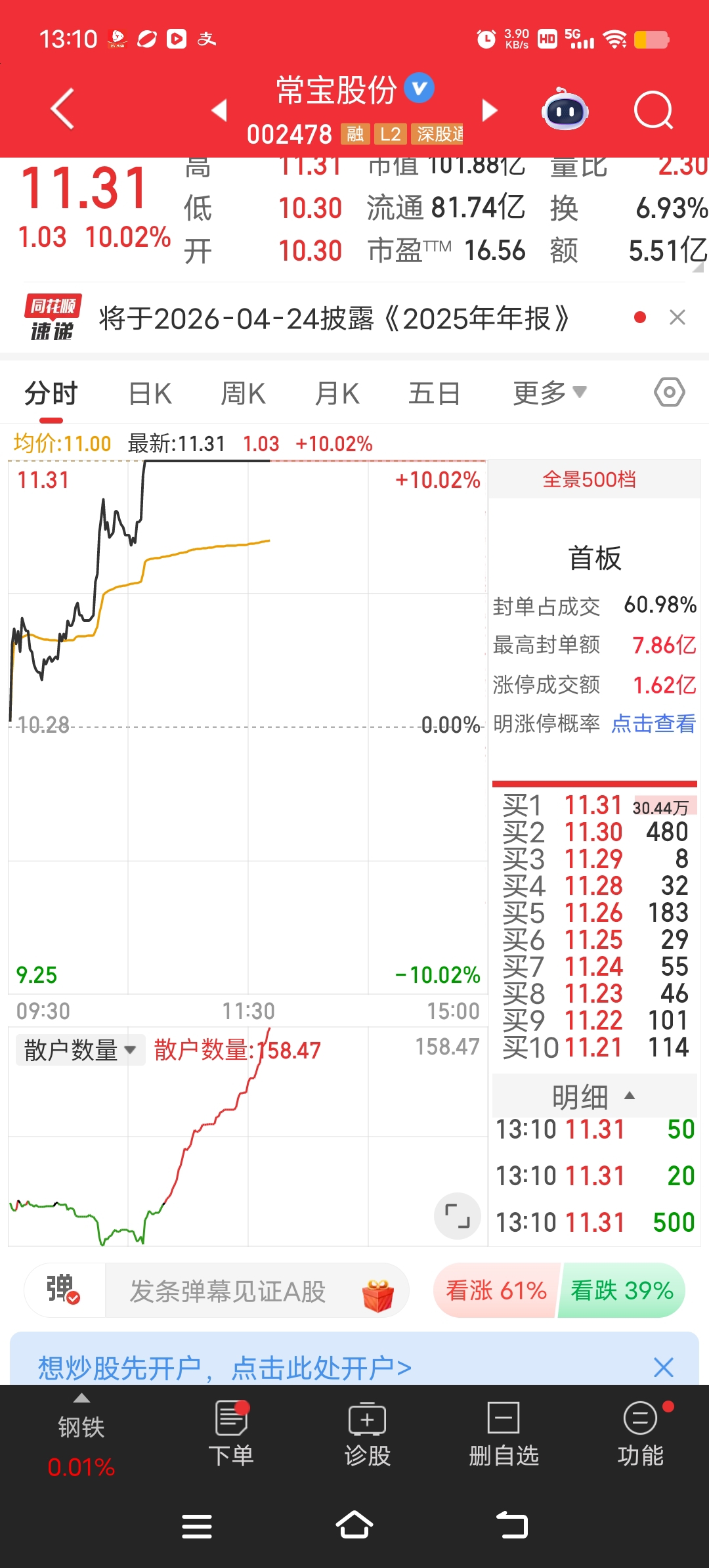 $常宝股份(SZ002478)$ 好怕啊散户疯狂拥入我今天动不了!!!