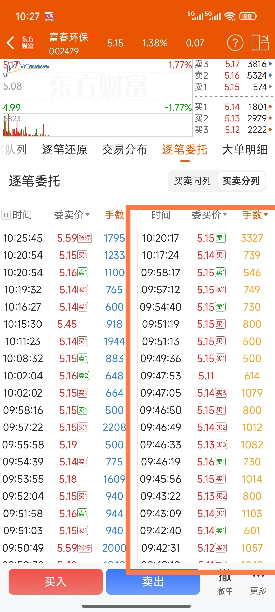 $富春环保(SZ002479)$ 今天早上少部分大单主动买进,大部分单以挂托单为主