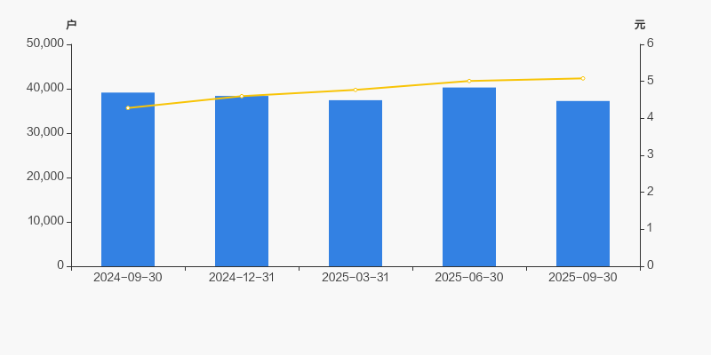 2024年9月30日至今,公司股东户数有所下降,区间跌幅为4.84%。2024年9月30日至2025年9月30日区间股价上涨18.65%。