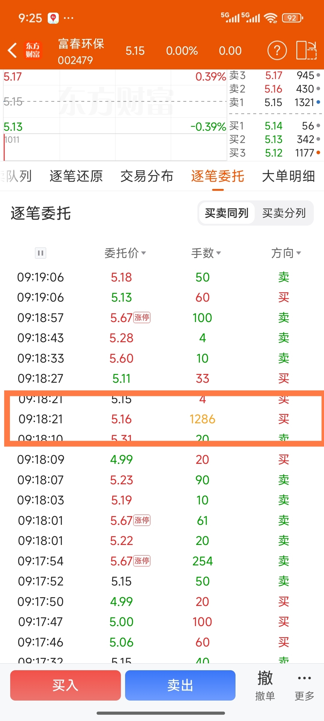 $富春环保(SZ002479)$ 这个小散每天竞价打高买入,但每次不到一分钟又撤,意欲何为