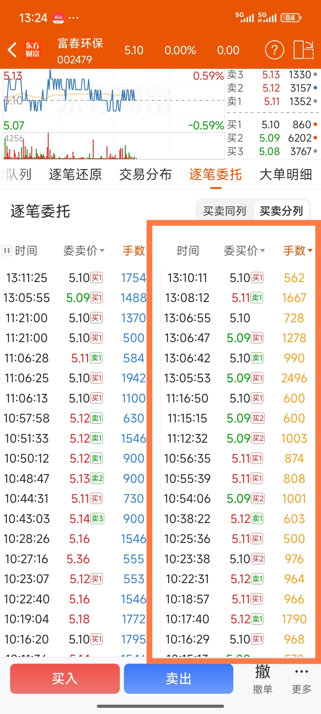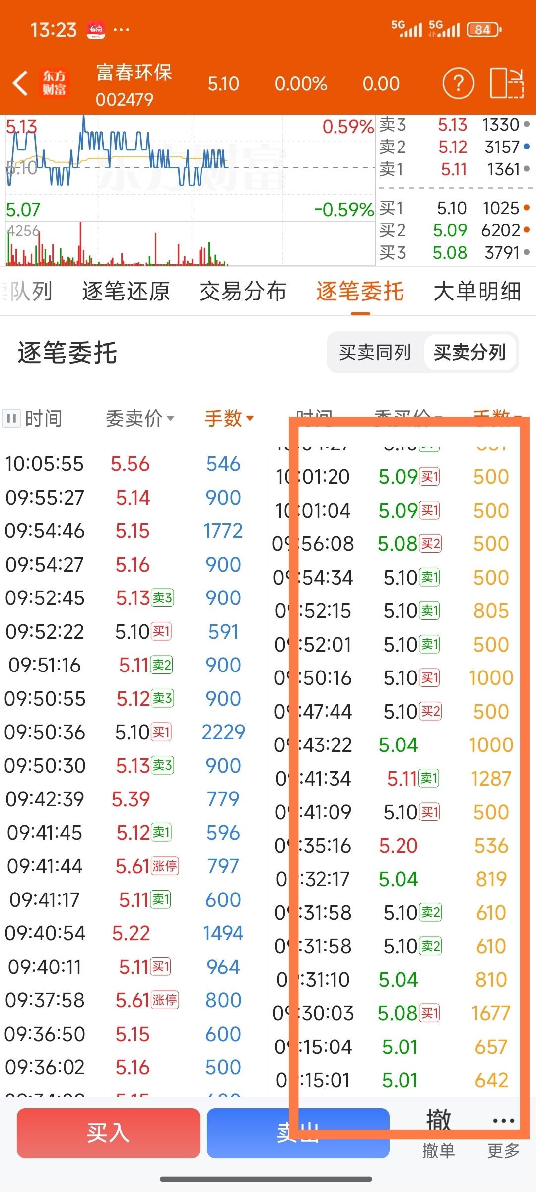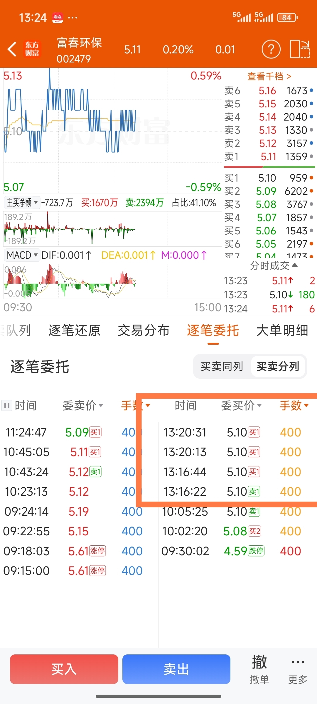今天买盘还不错,单笔大单不少,特别一直用400手顶上