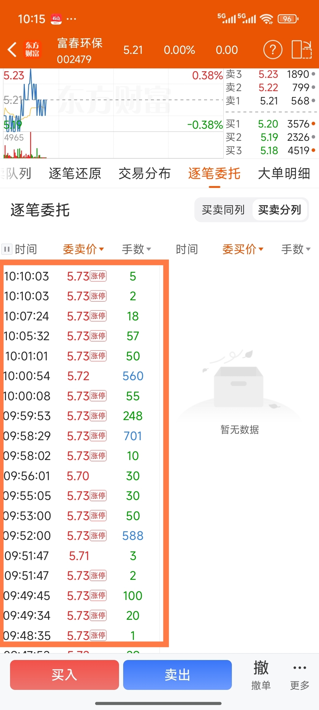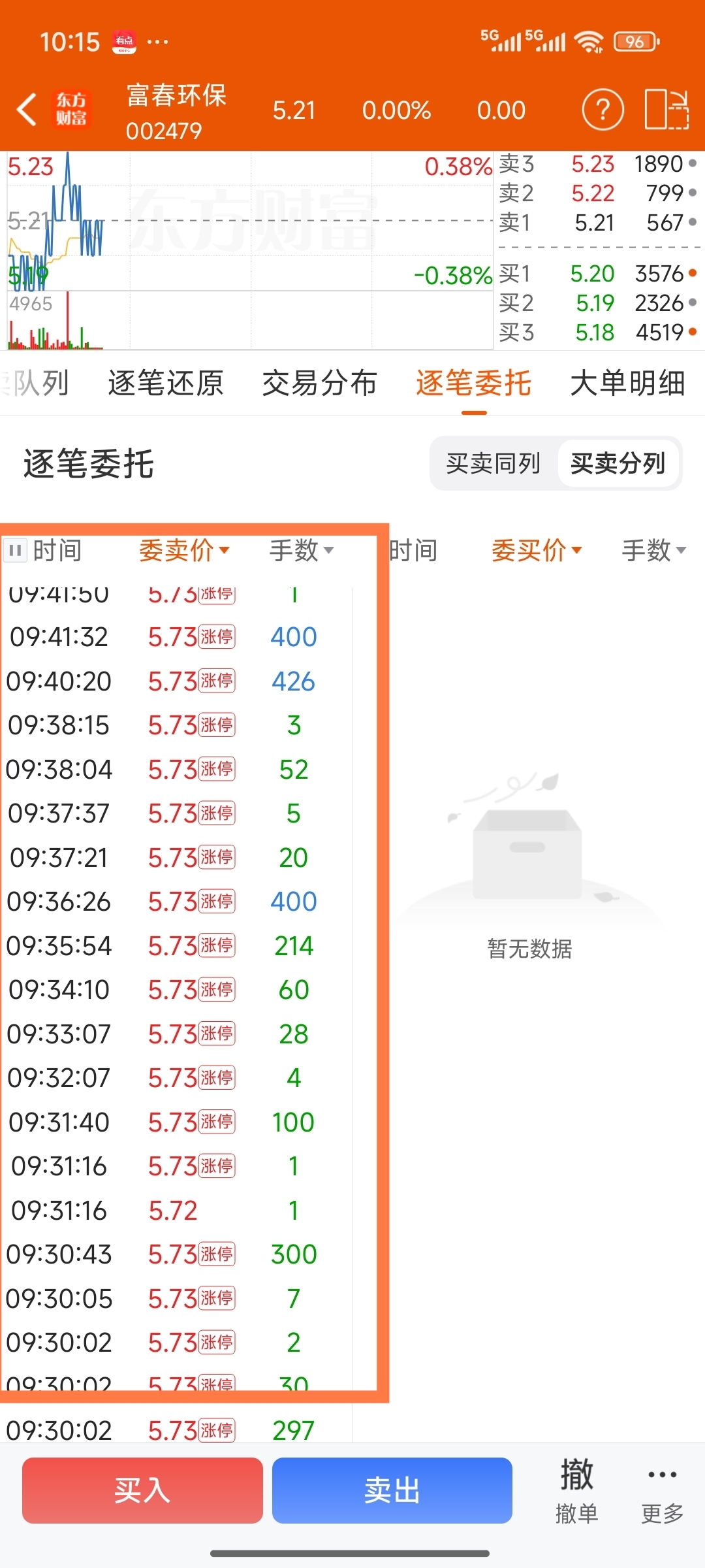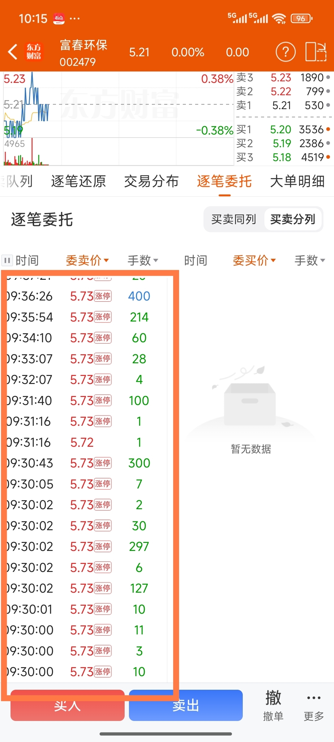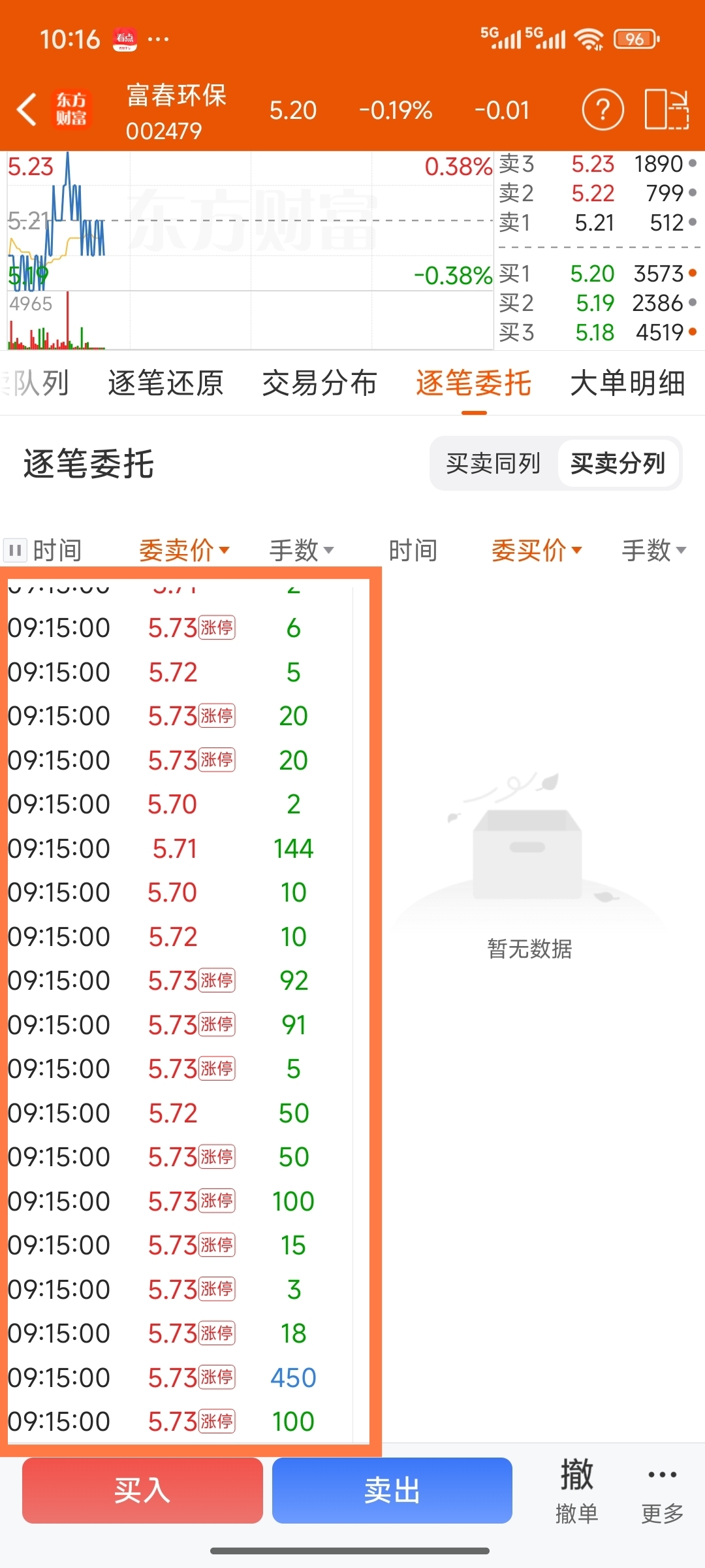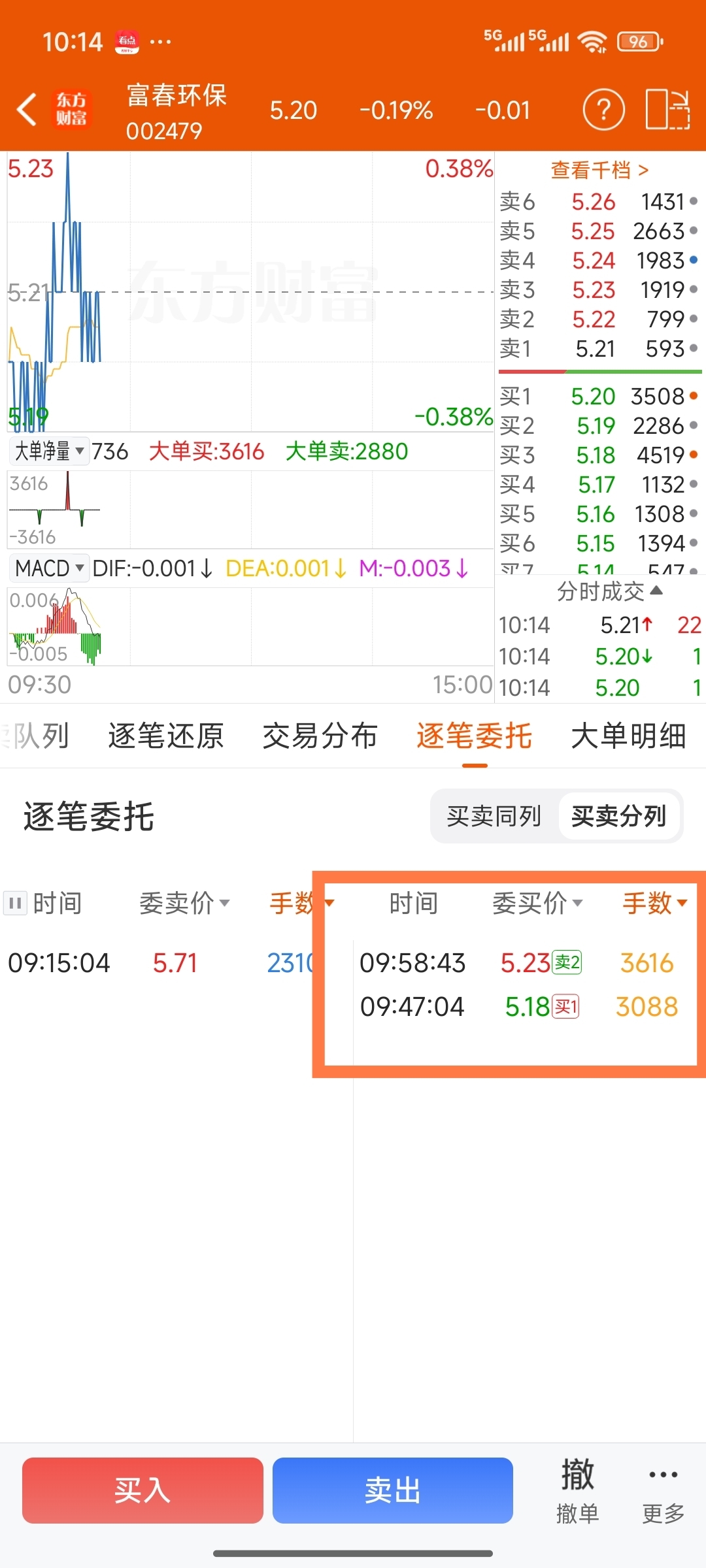 今天卖单挂涨停挺多的啊,有两笔3000多买单,一笔吃进,一笔挂5.18后就不动了