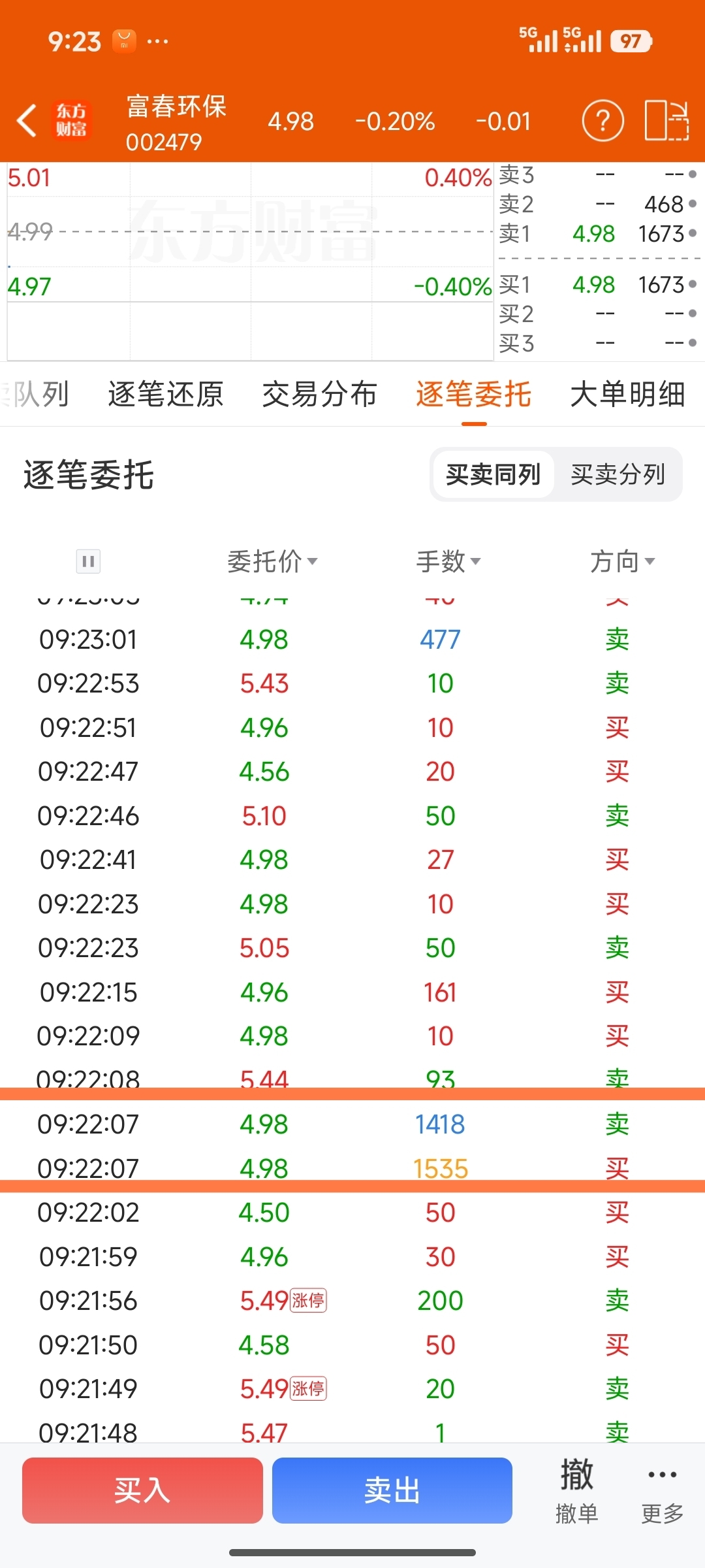 $富春环保(SZ002479)$ 集合竞价买卖对倒