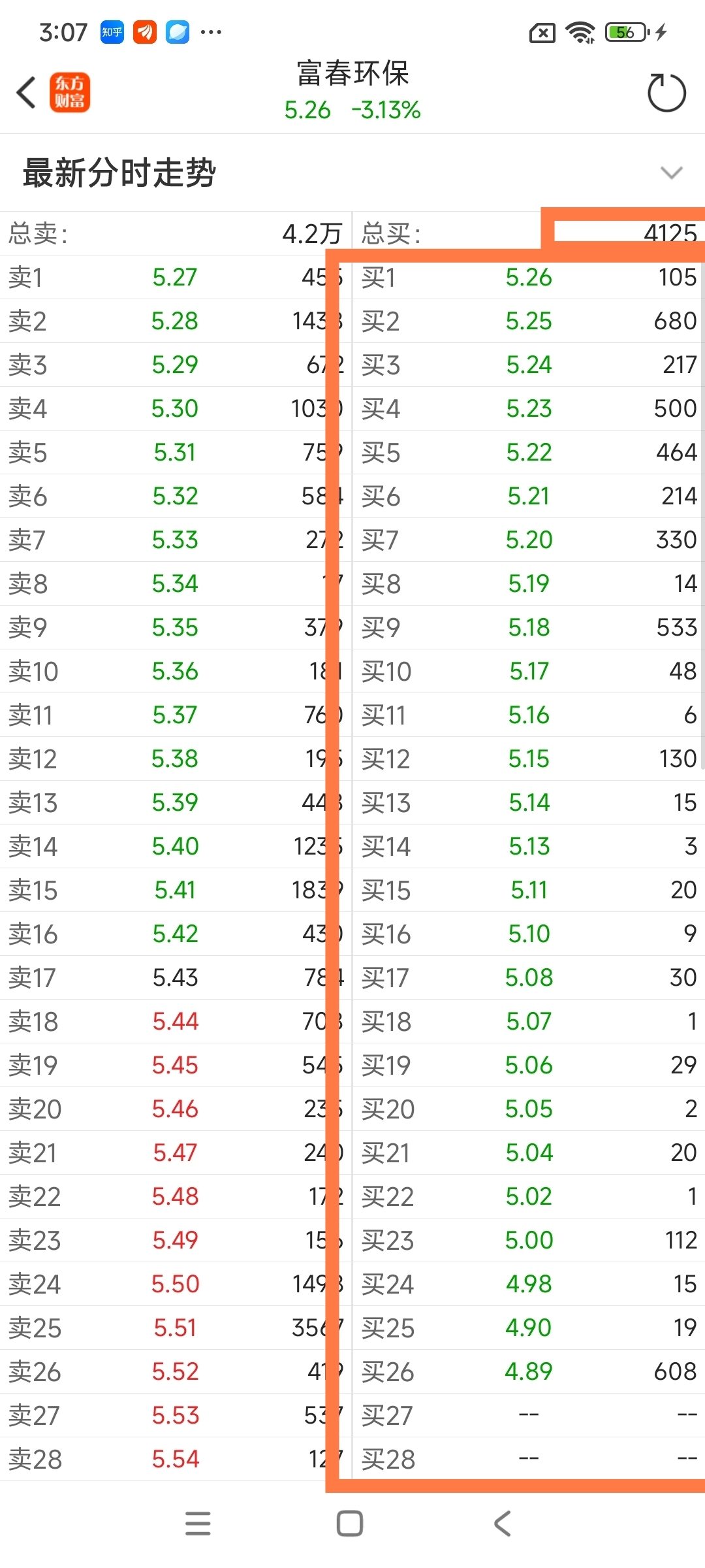 $富春环保(SZ002479)$ 从上到跌停总买盘就这一点