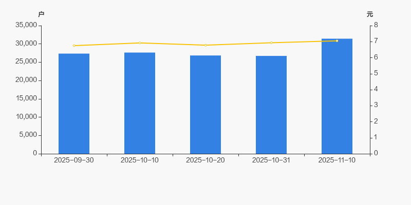 2025年9月30日至今,公司股东户数显著增长,区间涨幅为14.87%。2025年9月30日至2025年11月10日区间股价上涨4.44%。