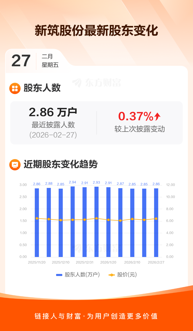 新筑股份:截至2月27日最新股东户数2.86万户,较上期增加0.37%