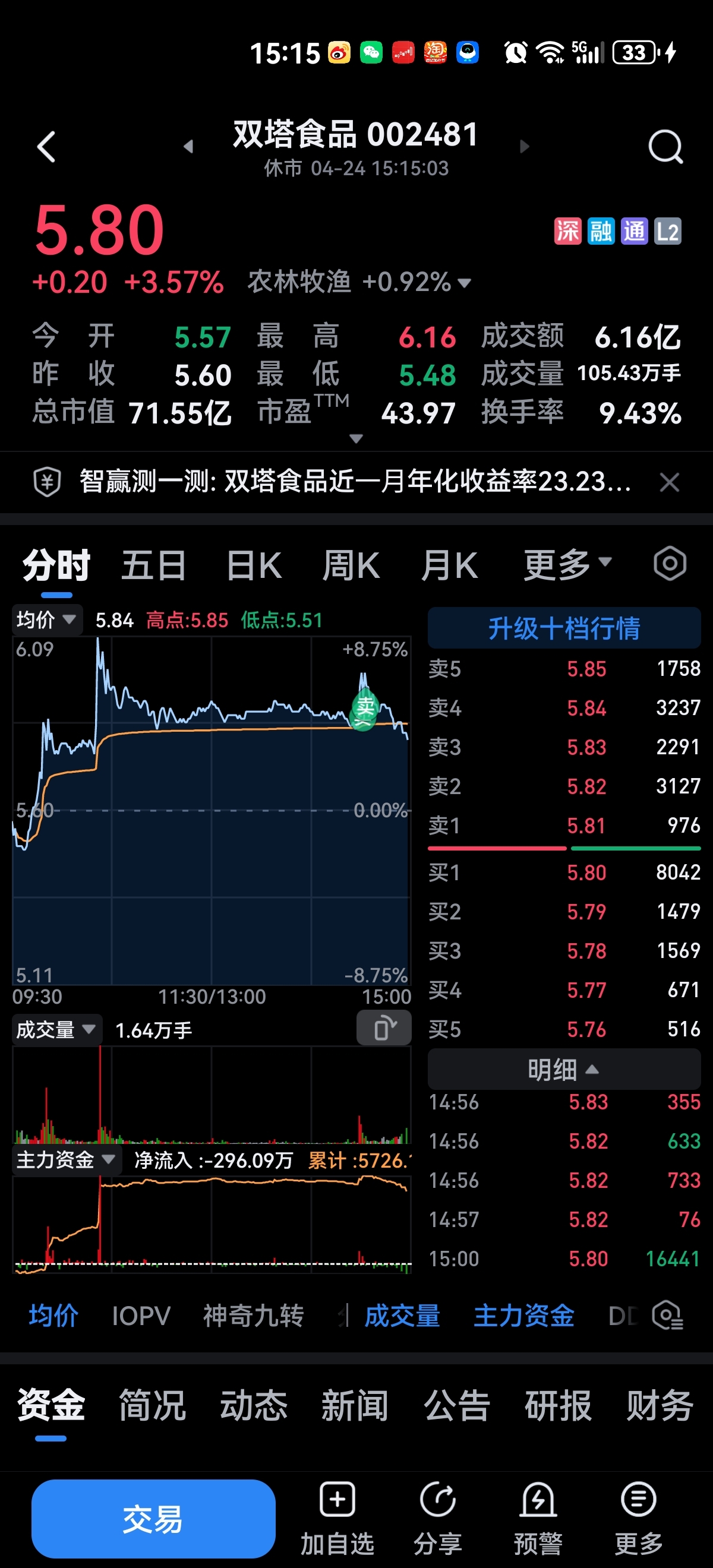 上午涨停板没出,下午还好最高点6.0出了,等回调还进的等我回来