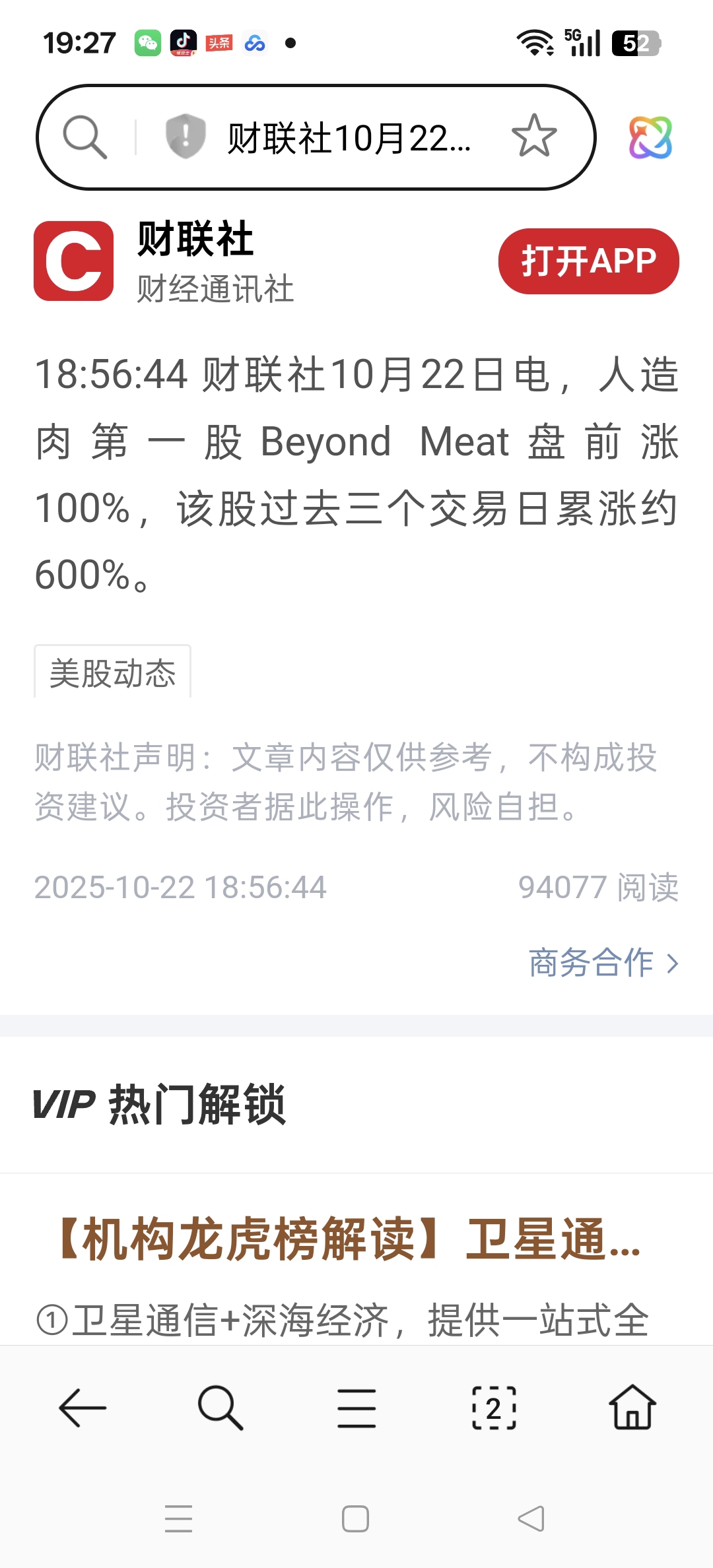 $双塔食品(SZ002481)$ 美股人造肉仍在涨600%基础上又涨了140%,继续关注