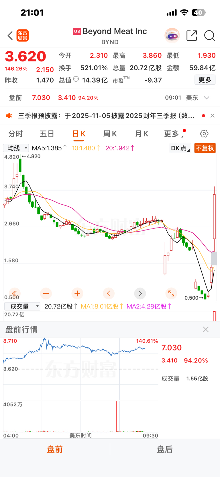 美股人造肉晚上隔夜盘前又暴涨100%,本周涨幅超过10倍,A股人造肉龙头双塔食品