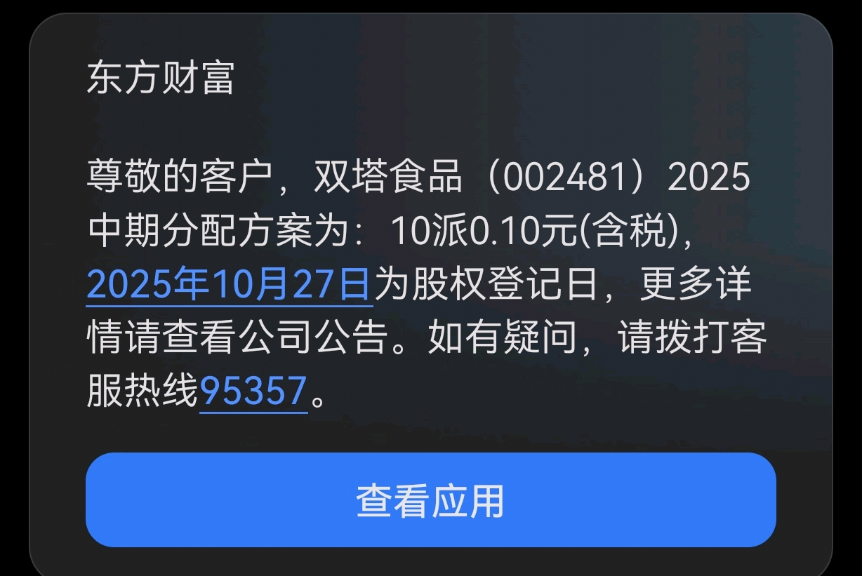 $双塔食品(SZ002481)$ 收到短信是啥意思
