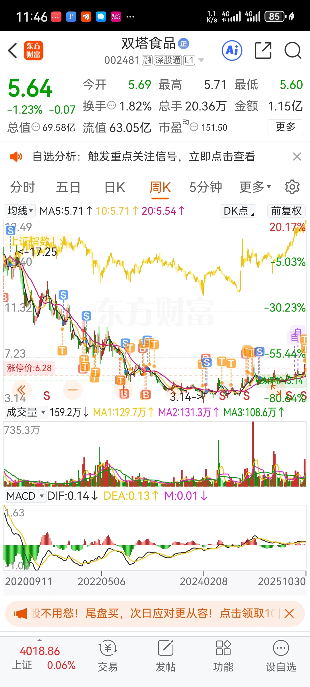 $双塔食品(SZ002481)$ 庄股不能碰啊格局一次亏一次