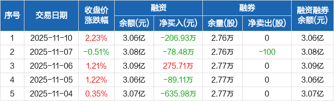 双塔食品:融资净偿还206.93万元,融资余额3.06亿元(11-10)