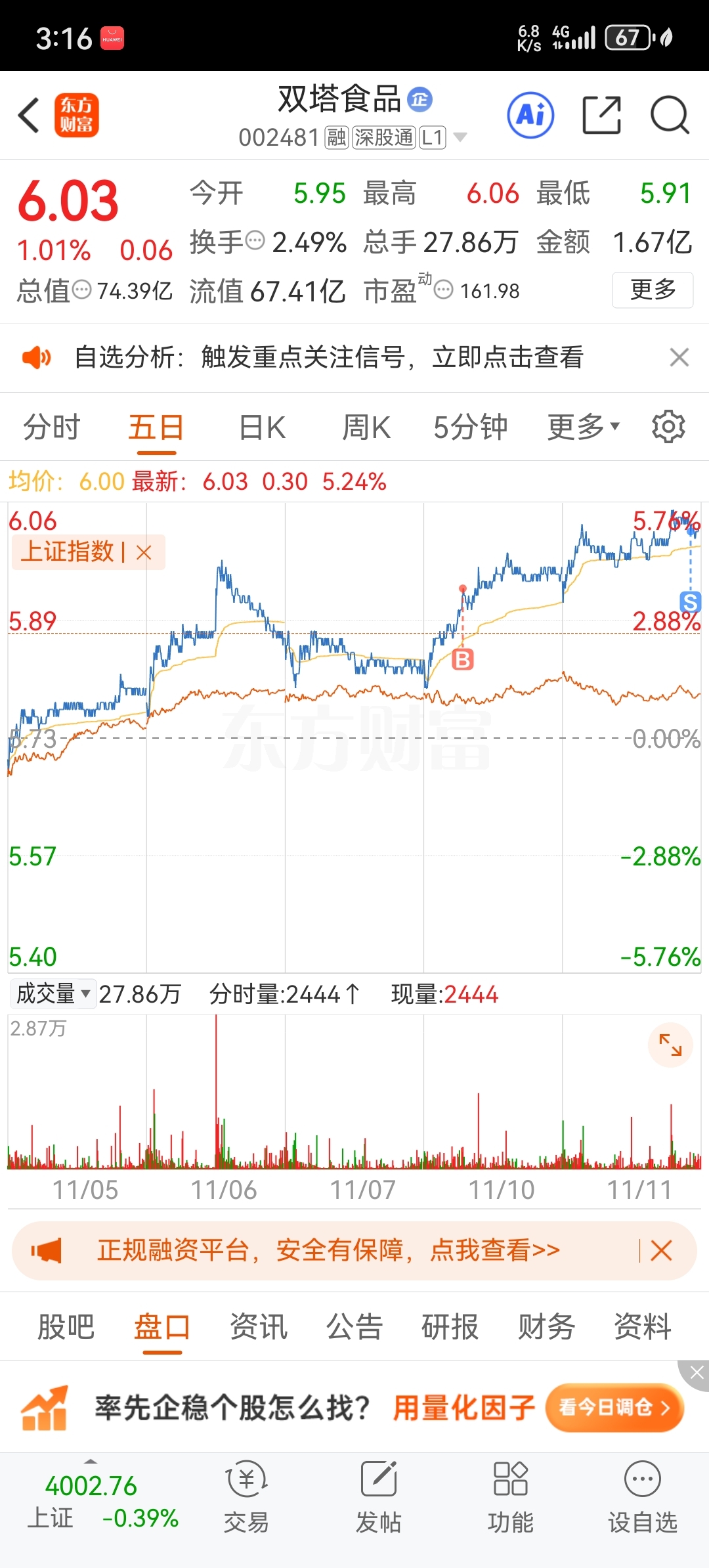 $双塔食品(SZ002481)$ 中免都带不动清仓换大市值了