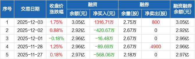 双塔食品:融资净买入1316.71万元,融资余额3.05亿元(12-03)