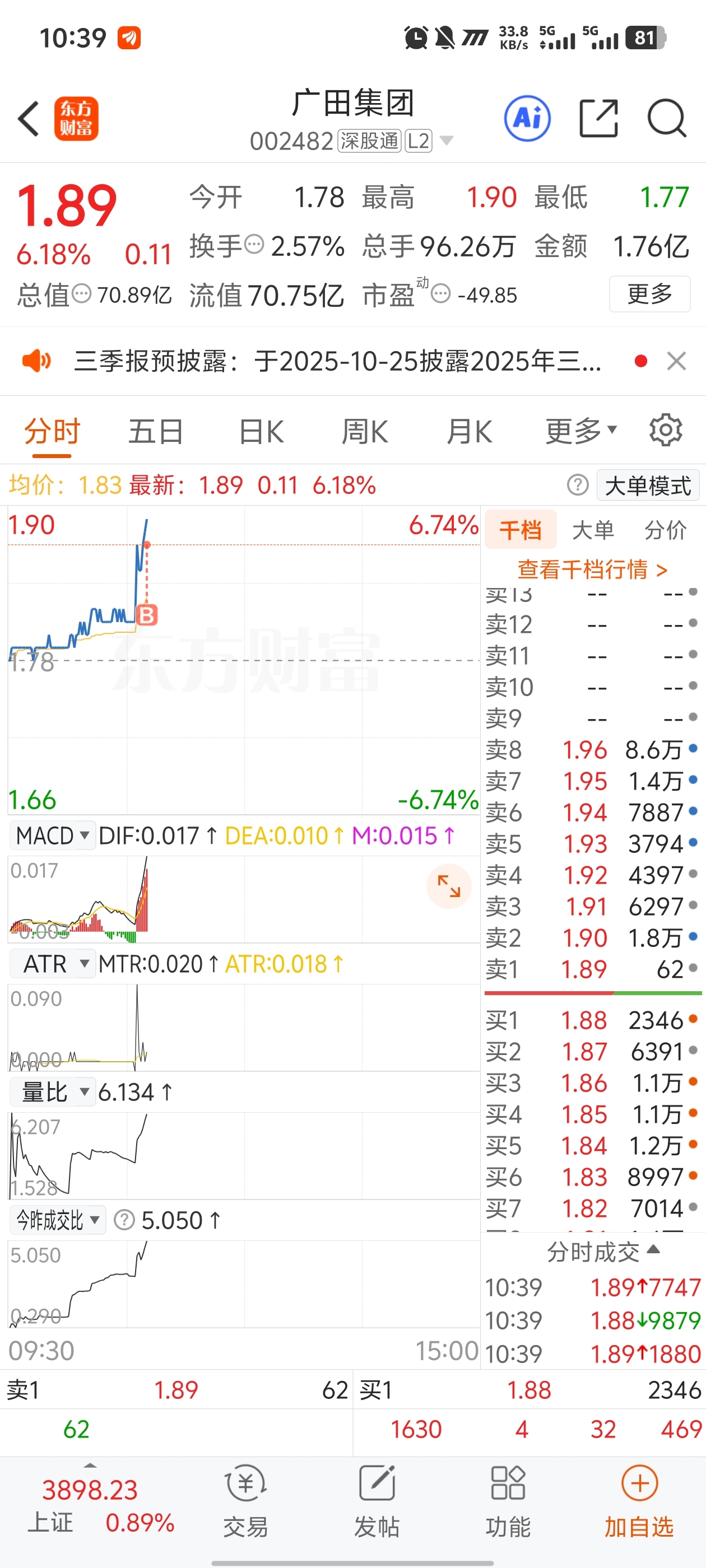 $广田集团(SZ002482)$ 不用担心明天继续板,别被踏空者钻空子