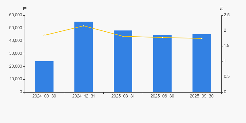 2024年9月30日至今,公司股东户数显著大幅增长,区间涨幅达86.84%。2024年9月30日至2025年9月30日区间股价下降5.41%。