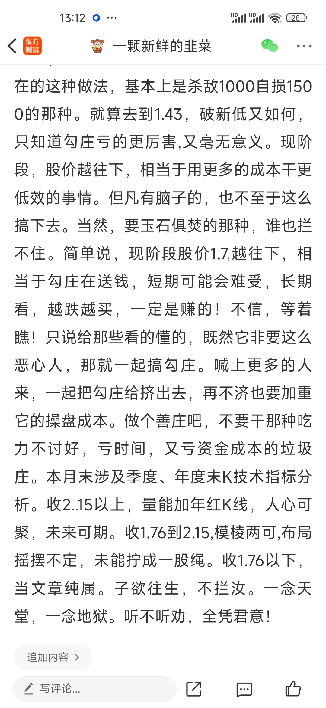 温馨提示: 1.根据《证券法》规定,禁止编造、传播虚假信息或者误导性信息,扰乱证券市场;2.用户在本社区发表的所有资料、言论等仅代表个人观点,与本网站立场无关,不对您构成任何投资建议。用户应基于自己的独立判断,自行决定证券投资并承担相应风险。《东方财富社区管理规定》