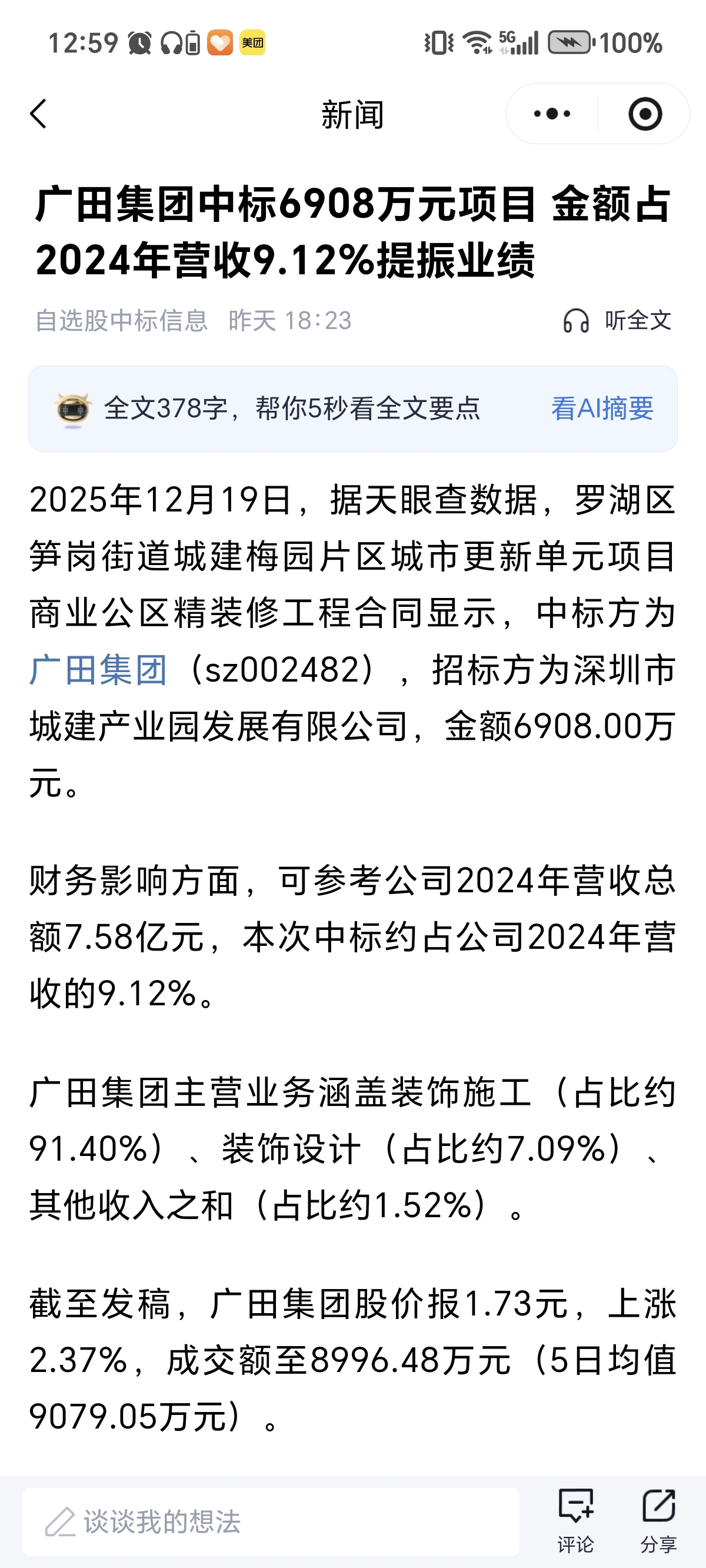 $广田集团(SZ002482)$ 绝境求生,又中标了