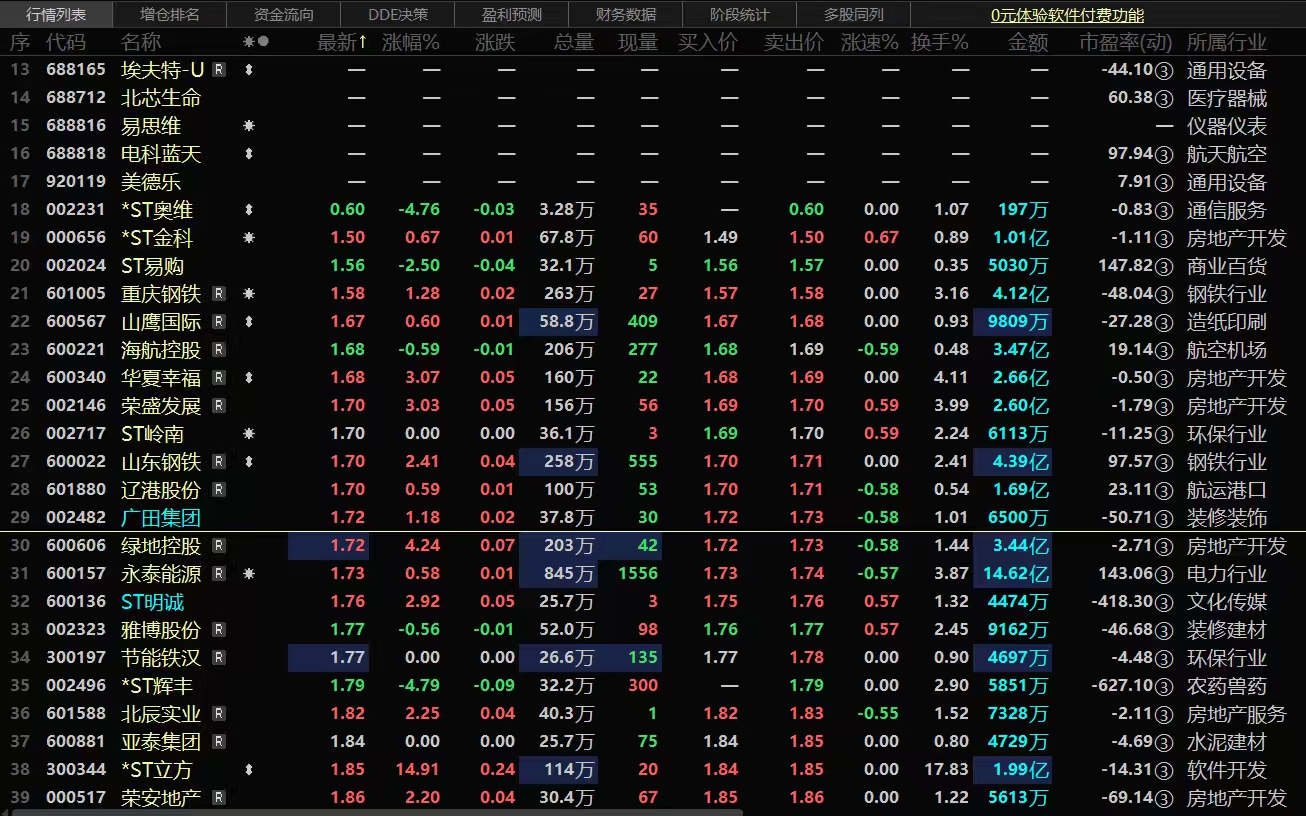 广田集团真有出色,股价1.72元/股,沪深京排行榜倒数第十二位,排名不断往前!