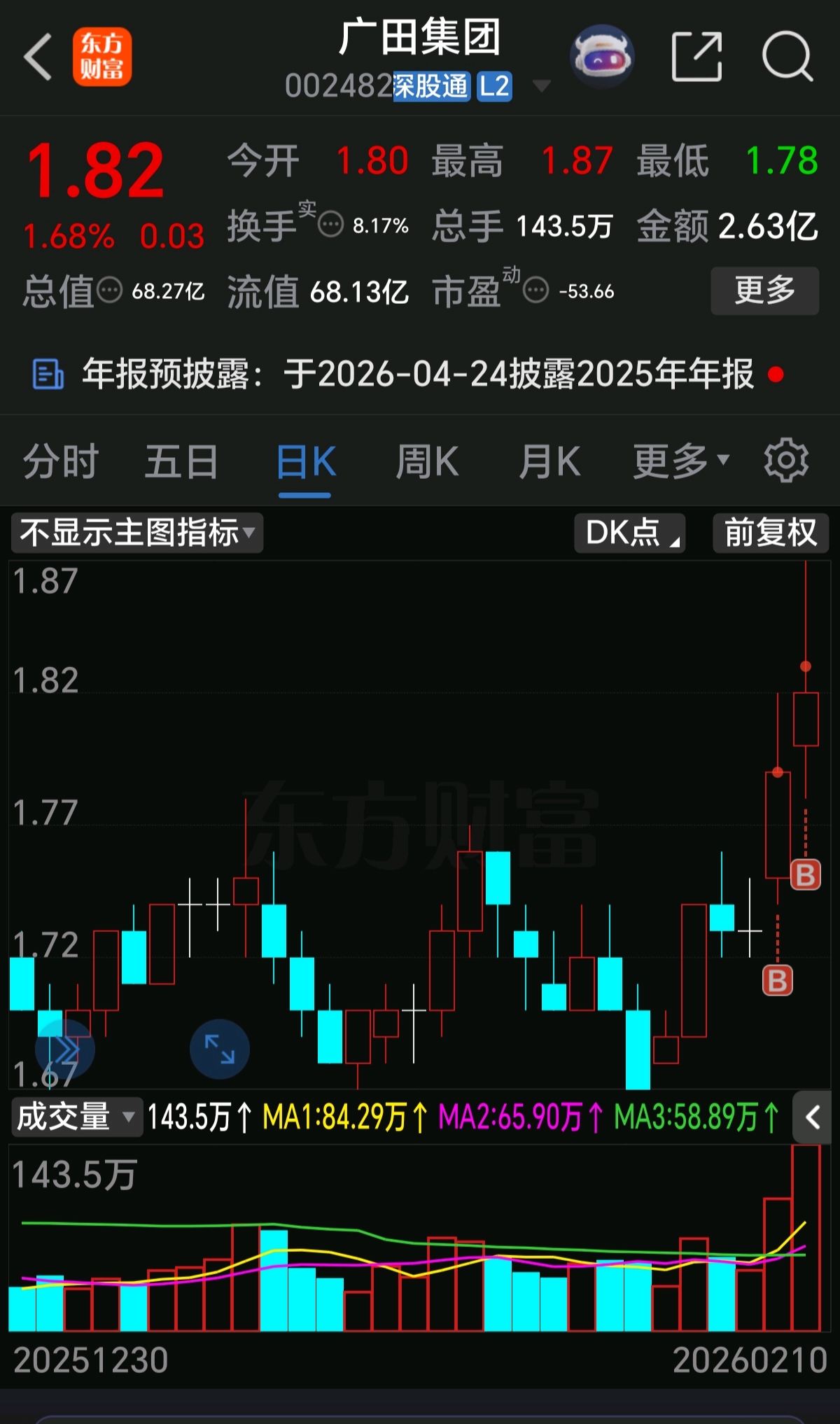 $广田集团(SZ002482)$ 马上追涨杀跌!马上暴富,马上有钱,马到擒来!