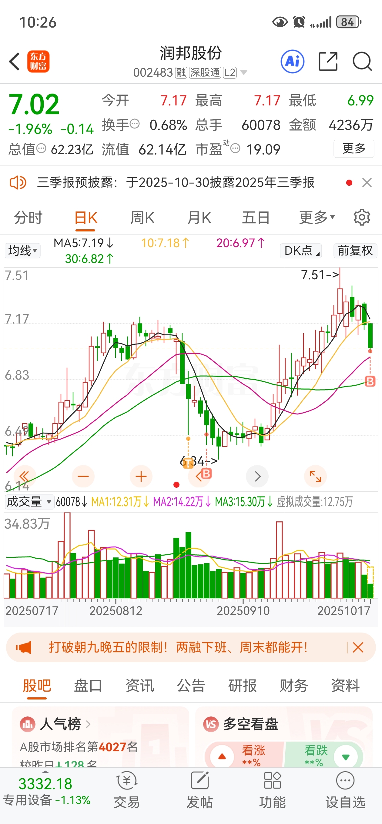 都说长线是金,润邦现在业绩好,高分红,市值低,市盈率也低,具备长线投资的价值。牛市捂股,看看捂到最后,能不能有较好的收益。