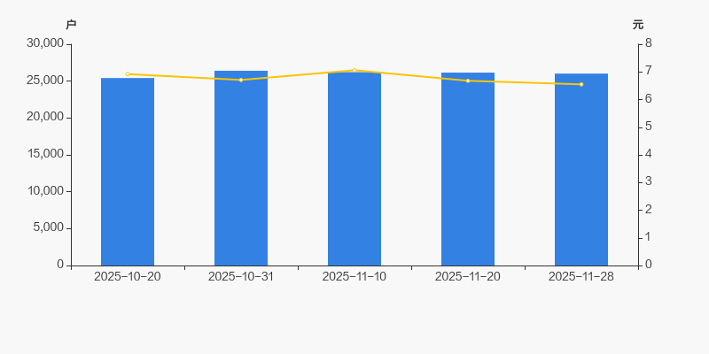 自2025年10月31日以来,公司股东户数连续3期下降,截至目前减幅为1.46%。2025年10月31日至2025年11月28日区间股价下降2.38%。