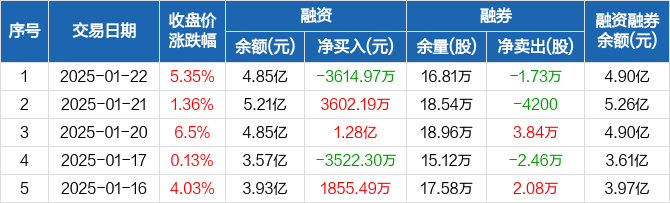 江海股份:融资净偿还3614.97万元,融资余额4.85亿元(01-22)