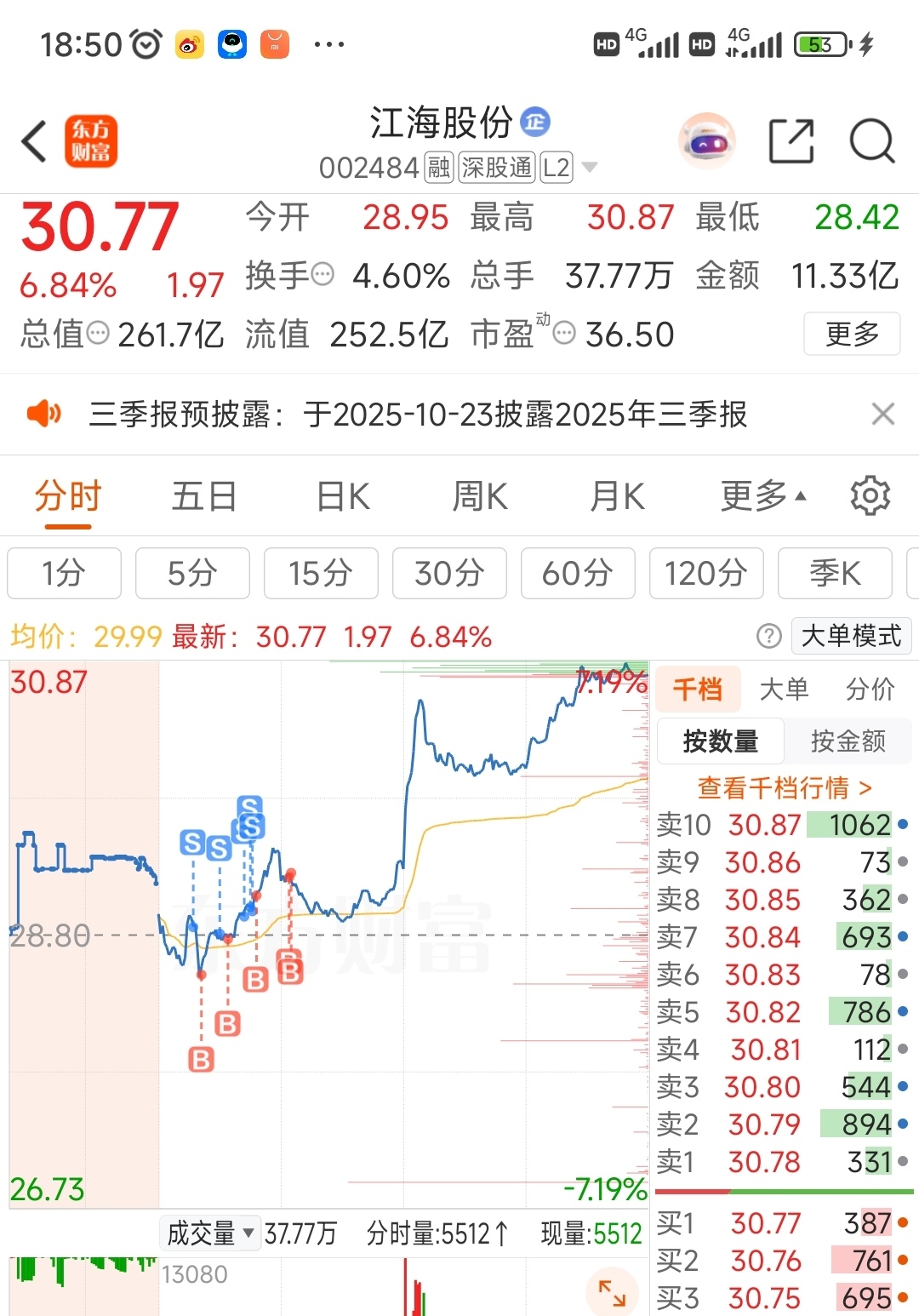 $江海股份(SZ002484)$ #炒股日记# #收盘点评# #实盘记录# 今天告诉我别飘,飘就教育你,跟这股一样,露头就秒你。第一次做套做的飘了第二次就教你做人了。