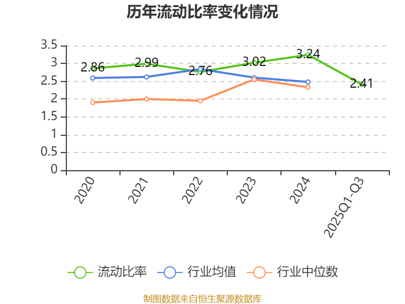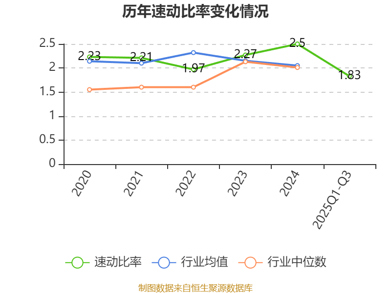2025年前三季度,公司流动比率为2.41,速动比率为1.83。