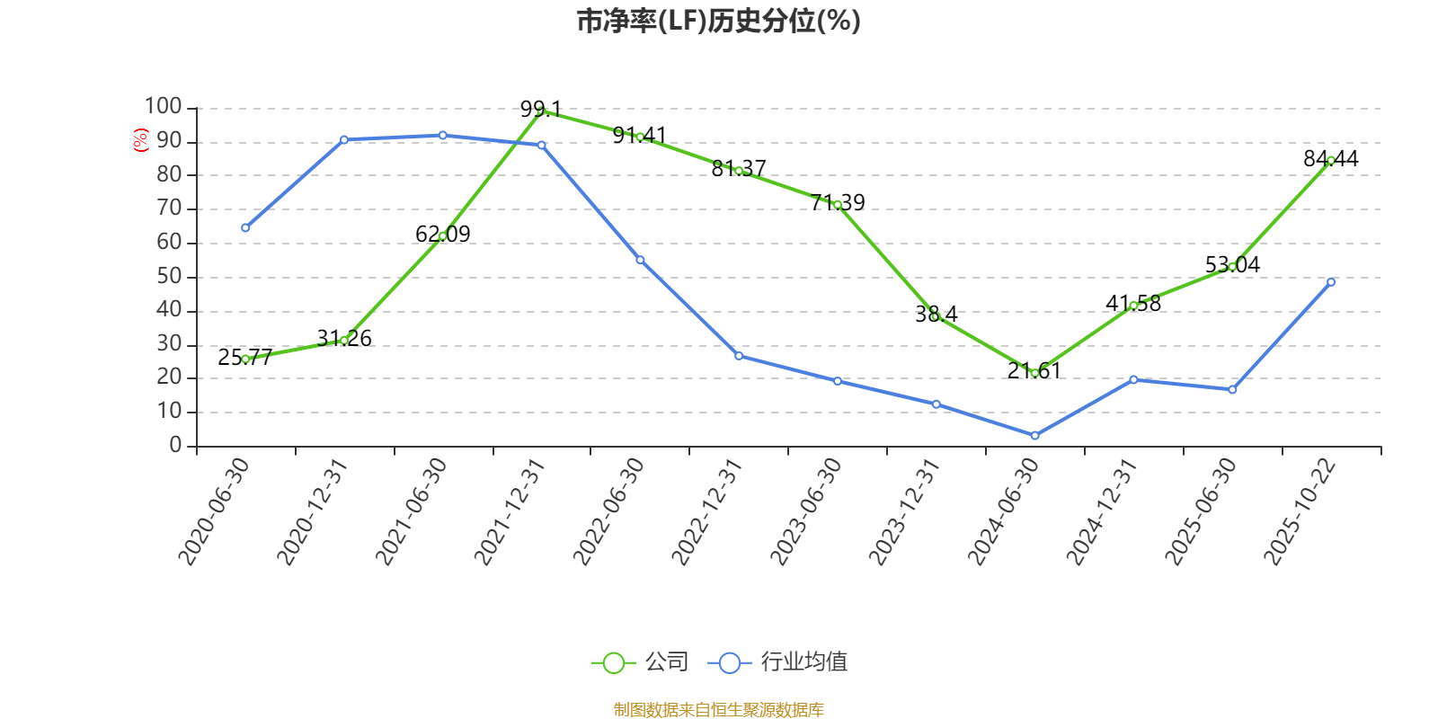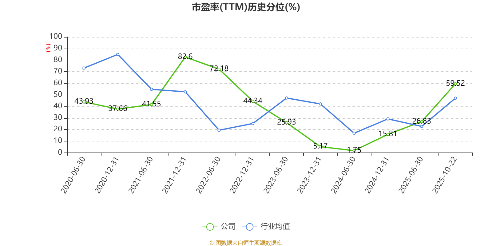 市盈率、市净率为负时,不显示当期分位数,会导致折线图中断。
