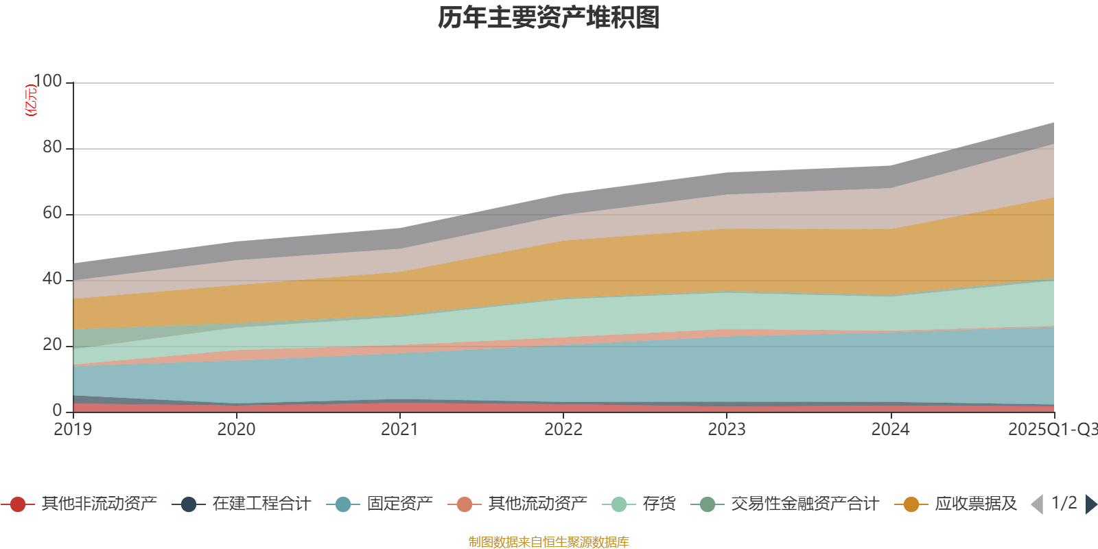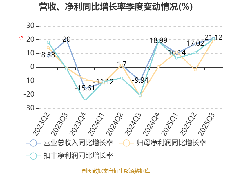 资产重大变化方面,截至2025年三季度末,公司货币资金较上年末增加30.78%,占公司总资产比重上升1.86个百分点;存货较上年末增加33.11%,占公司总资产比重上升1.82个百分点;固定资产较上年末增加11.65%,占公司总资产比重下降1.43个百分点;应收票据及应收账款较上年末增加22.99%,占公司总资产比重上升1.22个百分点。