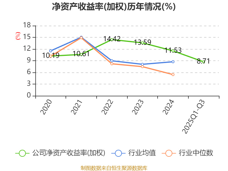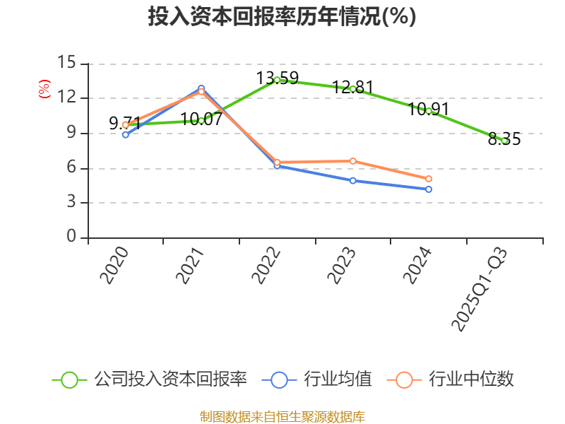 盈利能力方面, 2025年前三季度公司加权平均净资产收益率为8.71%,同比上升0.05个百分点。公司2025年前三季度投入资本回报率为8.35%,较上年同期上升0.13个百分点。