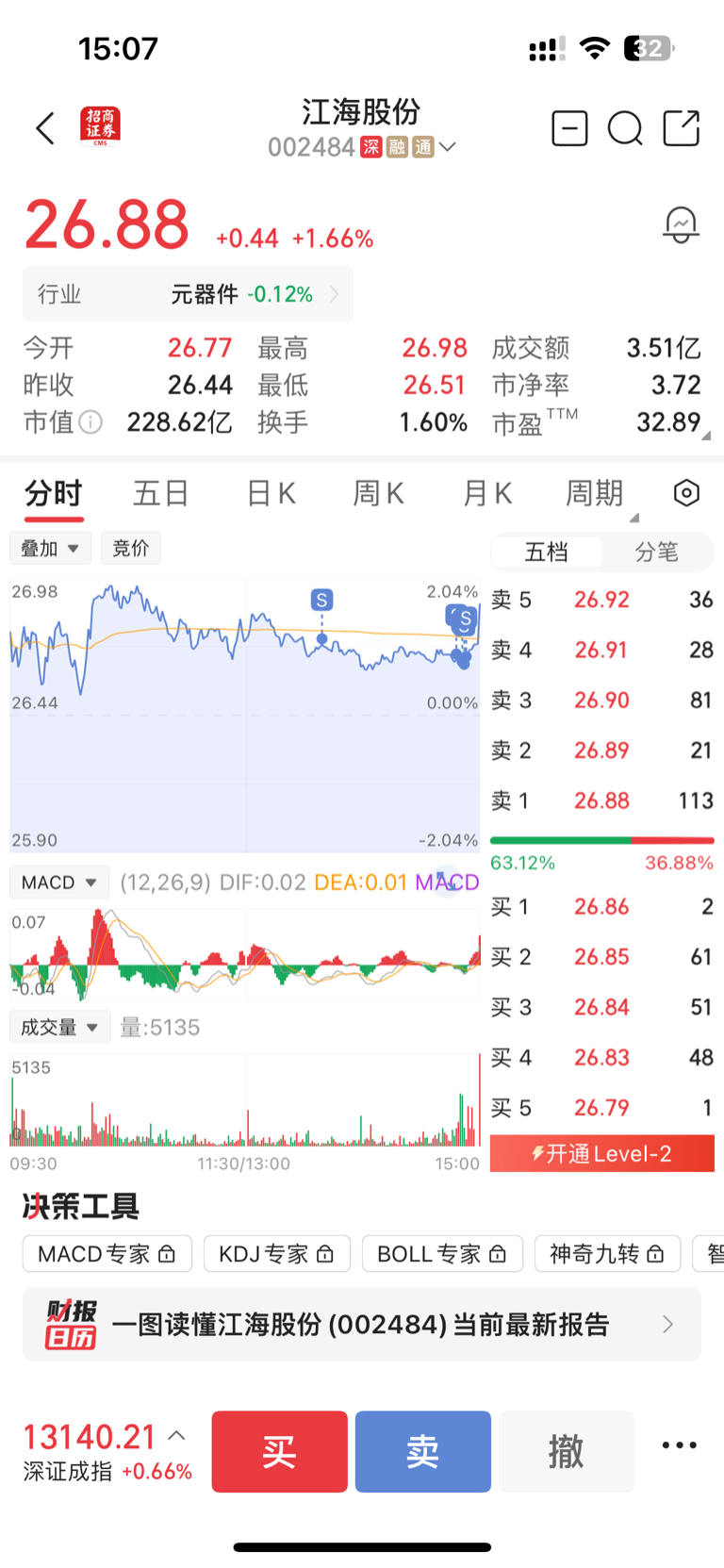 $江海股份(SZ002484)$ 我割了,你竞价拉高???