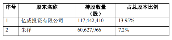 根据公告,公司第二大股东亿威投资(当前持股比例13.95%)计划通过大宗交易方式减持不超过16,841,491股,即不超过公司总股本的2.00%;第三大股东朱祥(当前持股比例7.20%)计划通过大宗交易或集中竞价方式减持不超过800万股,即不超过公司总股本的0.95%。