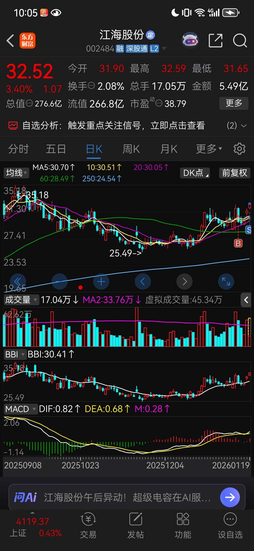 $江海股份(SZ002484)$ 卖飞,要不要换顺络电子做补涨