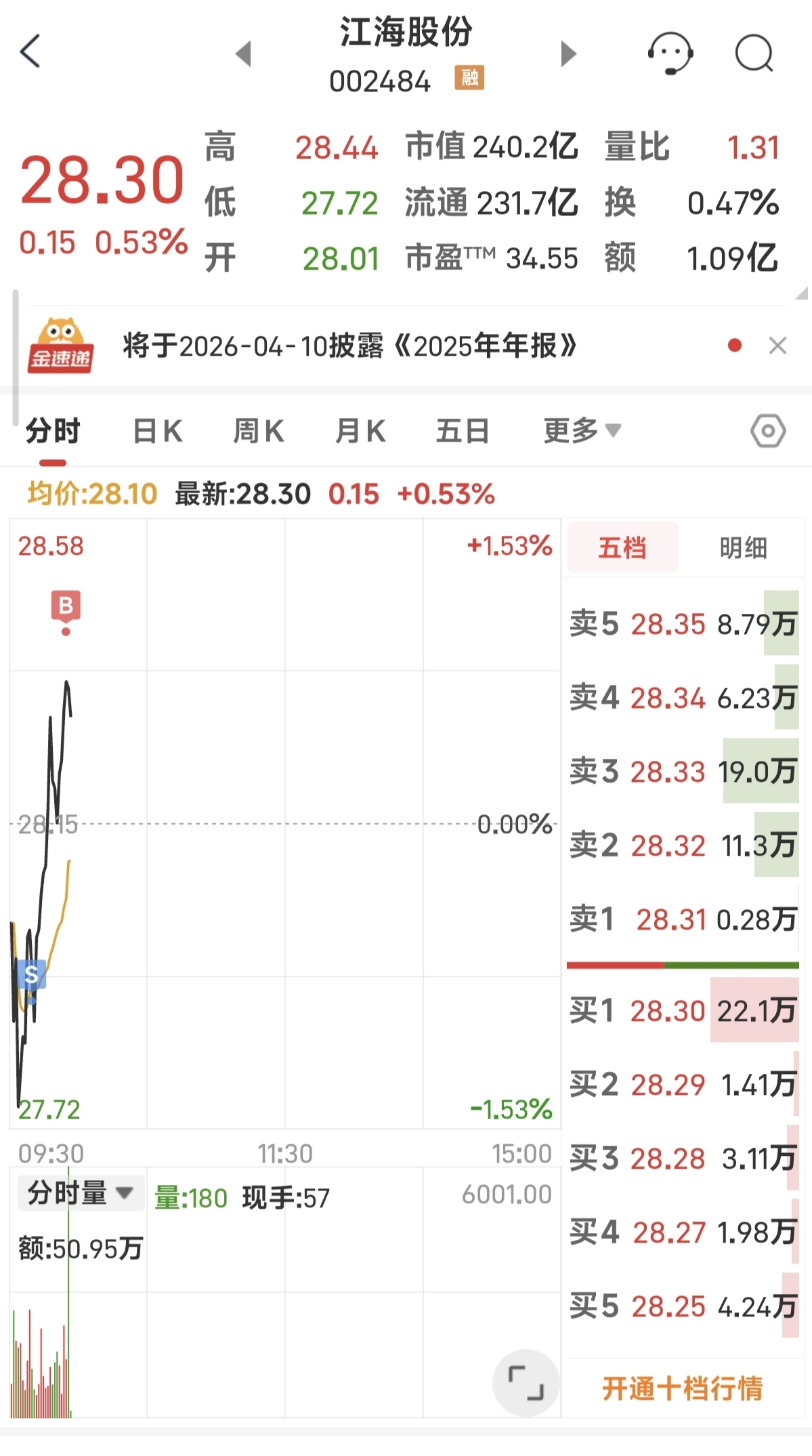 $江海股份(SZ002484)$ 买入虚空位了今天