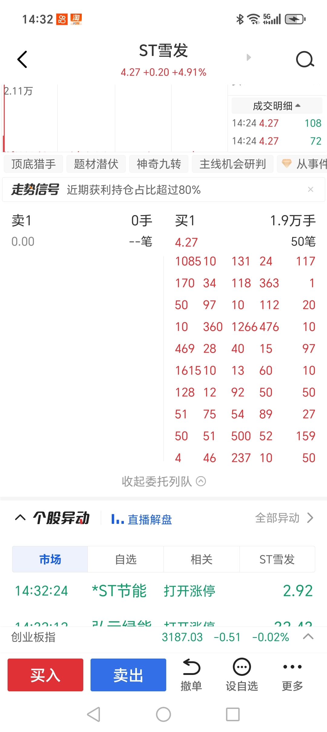 $ST雪发(SZ002485)$ 都撤单吧、现在诱多、暂时股份拍卖不了、明年才有行情