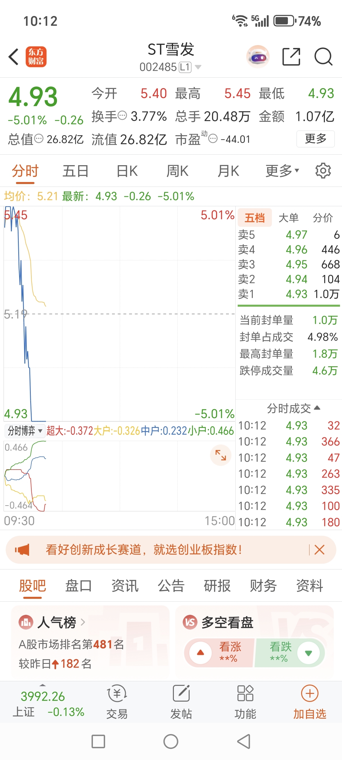 $ST雪发(SZ002485)$ $上证指数(SH000001)$ 我朋友想买入赌个地天板,他问我能买嘛?我该怎么回复他?