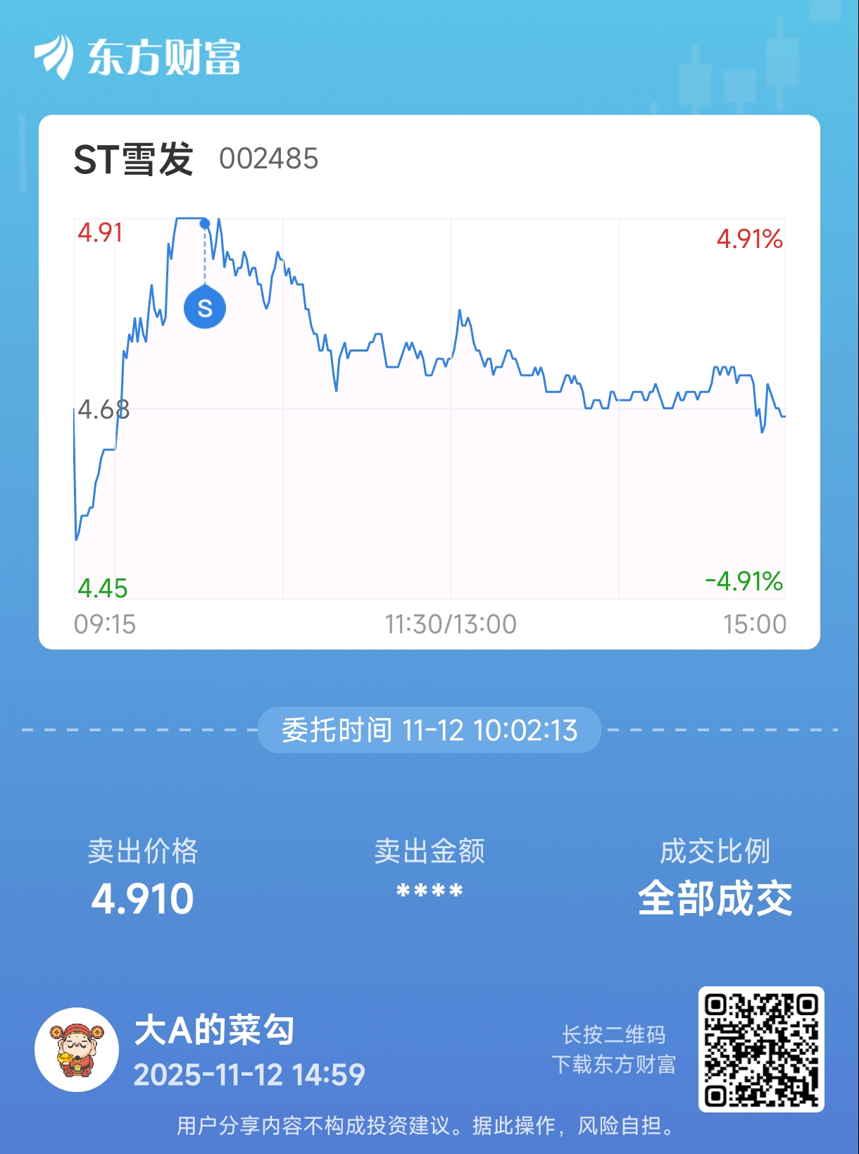 温馨提示: 1.根据《证券法》规定,禁止编造、传播虚假信息或者误导性信息,扰乱证券市场;2.用户在本社区发表的所有资料、言论等仅代表个人观点,与本网站立场无关,不对您构成任何投资建议。用户应基于自己的独立判断,自行决定证券投资并承担相应风险。《东方财富社区管理规定》